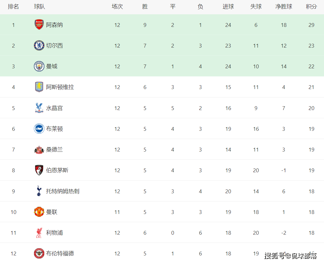 英超直播,英超赛程,英超积分榜,英超比分预测,曼联利物浦直播/覆盖2025年英超联赛所有比赛,提供免费高清中文直播入口、最新赛程安排、实时积分榜、比分预测与波胆分析,聚焦曼联、利物浦、曼城、阿森纳等豪门动态。本赛季英超第12轮基本结束,只剩下曼联VS埃弗顿的比赛,但不影响积分榜的整体排名。领头羊阿森纳主场4-1大胜热刺之后,将领跑优势扩大到6分,切尔西、曼城分列第二、第三,卫冕冠军利物浦本轮0-3惨败诺丁汉森林之后,排名已经跌至十一位,对比两个月之前的榜首,真是天差地别。