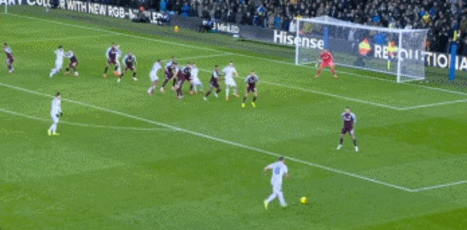 第8分钟,利兹联任意球进攻,门将大马丁内斯解围失误,恩梅查头槌破门,帮助利兹联1-0领先。