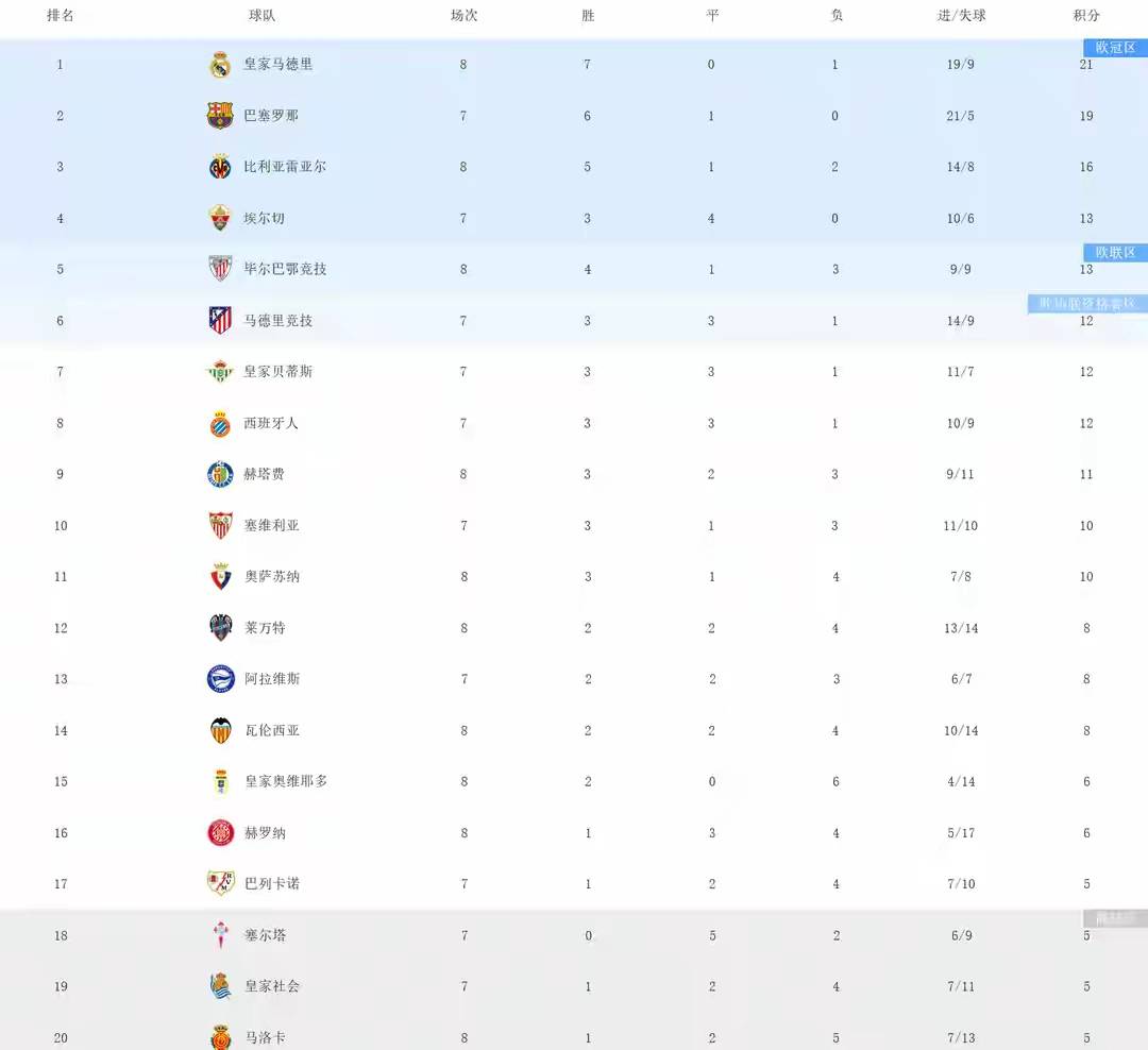 同一天凌晨,西甲第八轮的焦点战中,皇家马德里在主场以3-1击败了比利亚雷亚尔,凭借这场胜利,皇马以多赛一场的优势暂时位居榜首,领先巴萨2分。比赛前,皇马在前7轮取得了6胜1负的成绩,虽然上轮马德里德比以2-5败给了马竞,但他们在欧冠中以5-0大胜阿拉木图凯拉特,状态回升。比利亚雷亚尔则以5胜1平1负积16分排名第三,距离榜首仅有3分之差。