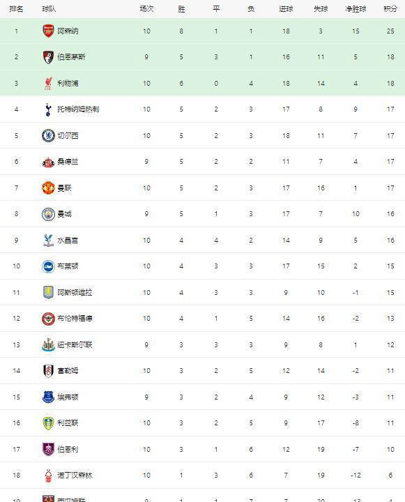 英超直播,英超赛程,英超积分榜,英超比分预测,曼联利物浦直播/覆盖2025年英超联赛所有比赛,提供免费高清中文直播入口、最新赛程安排、实时积分榜、比分预测与波胆分析,聚焦曼联、利物浦、曼城、阿森纳等豪门动态。随着北京时间11月2日凌晨结束了英超第10轮多场比赛,其中阿森纳客场2-0战胜伯恩利,曼联客场2-2与诺丁汉森林战平,热刺则在主场0-1输给了切尔西,而利物浦主场则以2-0击败维拉。本文将对每场比赛进行简要综述。
