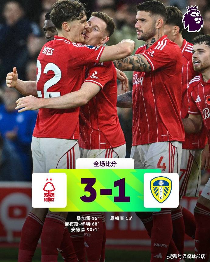 上半场,恩梅查禁区内低射破门,帮助利兹联1-0领先,随后不久,桑加雷补射破门,帮助诺丁汉森林1-1快速扳平。下半场,吉布斯-怀特、安德森各进一球,帮助诺丁汉森林3-1完成逆转。