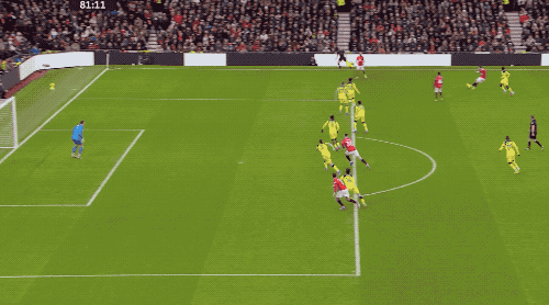 第81分钟,达洛特45度传中,舍什科争顶没能碰到皮球,B费后点包抄,弹射破门。这是B费为红魔制造的第200个进球。