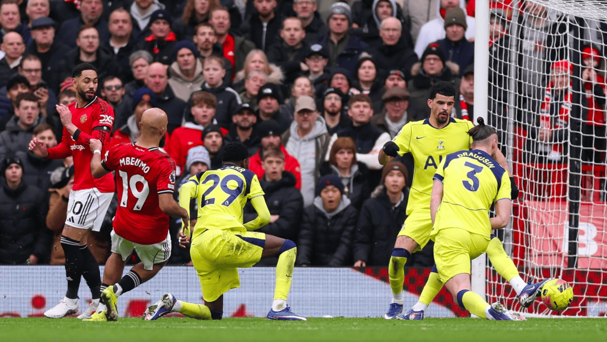 第38分钟,曼联开出战术角球,梅努不看人助攻,姆伯莫推射远角,打破僵局。