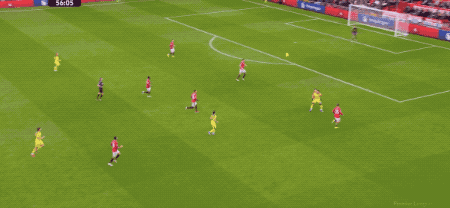 下半场开始仅仅4分钟,卢克肖送出妙传,阿玛德迪亚洛冷静推射,将球打进,但阿马德接球时已经越位,进球被判无效。