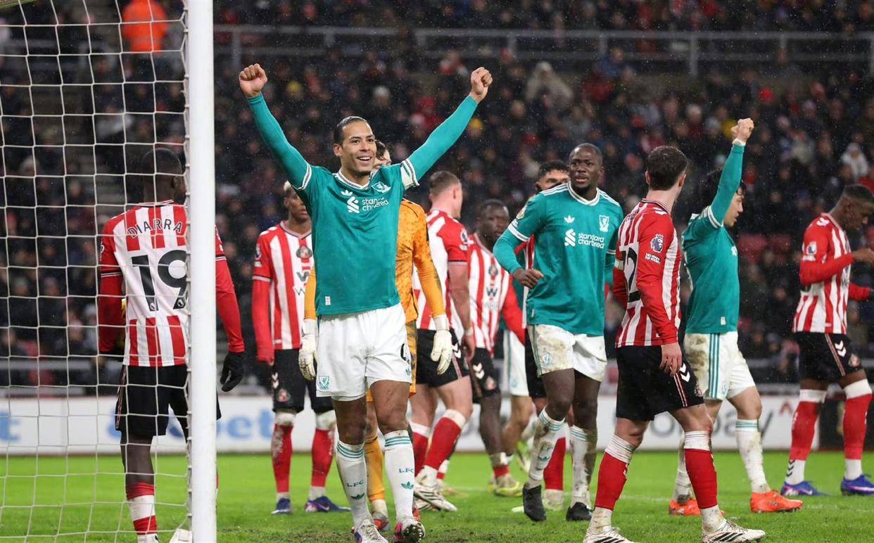 下半场第57分钟,困局终于被打破。利物浦获得角球机会,范戴克高高跃起,力压防守队员,用一记势大力沉的头球,将球狠狠地砸入球网!1比0!凭借这粒进球,范戴克也超越了队史其他后卫,成为利物浦英超进球最多的后卫。进球后的利物浦并未乘胜追击,反而踢得有些保守。桑德兰则抓住机会,发起了潮水般的反扑,利物浦门前险象环生。最终,红军众志成城,将1比0的比分保持到了终场。