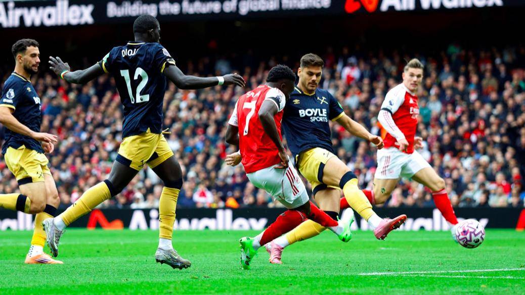 比赛进入第63分钟,阿森纳获得了一个点球机会。苏维门迪送出精准传球,廷贝尔在禁区内被迪乌夫铲倒,裁判果断判罚点球。萨卡稳稳地主罚点球命中,这也是他在本场比赛中的进球,连同周中的欧冠进球,萨卡迎来了自己在阿森纳的200场比赛里程碑。