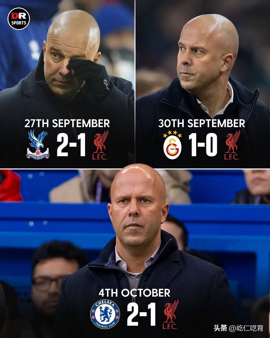从9月27日,英超第6轮客场1-2负于水晶宫开始,直到10月1日欧冠客场0-1输给加拉塔萨雷,再到10月5日联赛客场1-2被切尔西绝杀,利物浦在短短9天内经历了三连败,这也是本赛季最艰难的一段时光。