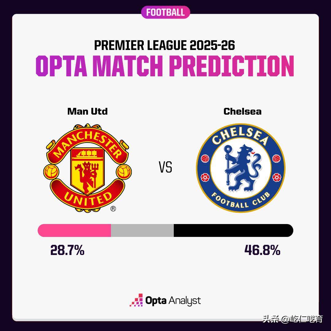 只不过,Opta给出的本场预测中,明显还是更倾向于客队--曼联胜,28.7%;切尔西胜,46.8%;双方平局,24.5%。