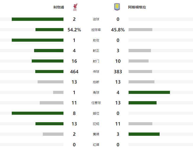 不甘落后的维拉在第70分钟发起反击,但马伦的射门稍稍偏出。随后的比赛中,利物浦开始控制节奏,虽然未能进一步扩大比分,但也没有给维拉任何机会,最终零封对手,取得一场宝贵的胜利。