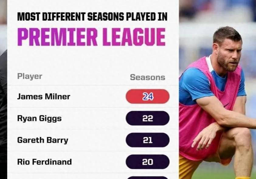 米尔纳不仅仅是简单的“资深球员”,他本赛季代表布莱顿参加了11场英超比赛,场均跑动超过10公里的体能表现让众多年轻球员也望尘莫及。按照他目前的上场节奏,预期将在赛季结束时超越巴里的653场纪录,正式加冕为英超出场次数第一人。此外,他已经打破了吉格斯、巴里和费迪南德等传奇球员保持的最长出场赛季纪录,双料纪录统一使得他的名字将在英超历史丰碑上永远闪耀。