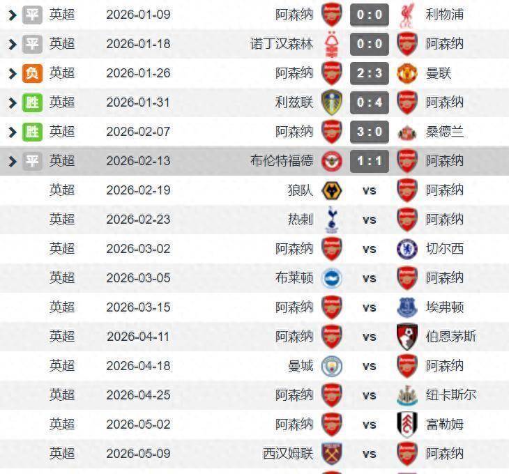 英超直播,英超赛程,英超积分榜,英超比分预测,曼联利物浦直播/覆盖2025年英超联赛所有比赛,提供免费高清中文直播入口、最新赛程安排、实时积分榜、比分预测与波胆分析,聚焦曼联、利物浦、曼城、阿森纳等豪门动态。北京时间2月13日凌晨,英超第26轮最后一场比赛在布伦特福德社区球场结束。 领头羊阿森纳在先进一球的情况下,被主队用招牌的“手榴弹”界外球战术扳平比分,最终1-1带走一场平局。 比赛最后时刻,替补登场的马丁内利甚至错失了一次绝佳的单刀机会,险些连这1分都保不住。 这场平局让枪手球迷的心悬到了嗓子眼,因为就在几小时前,他们的争冠最大对手曼城刚刚在伊蒂哈德球场3-0干净利落地击败了富勒姆。