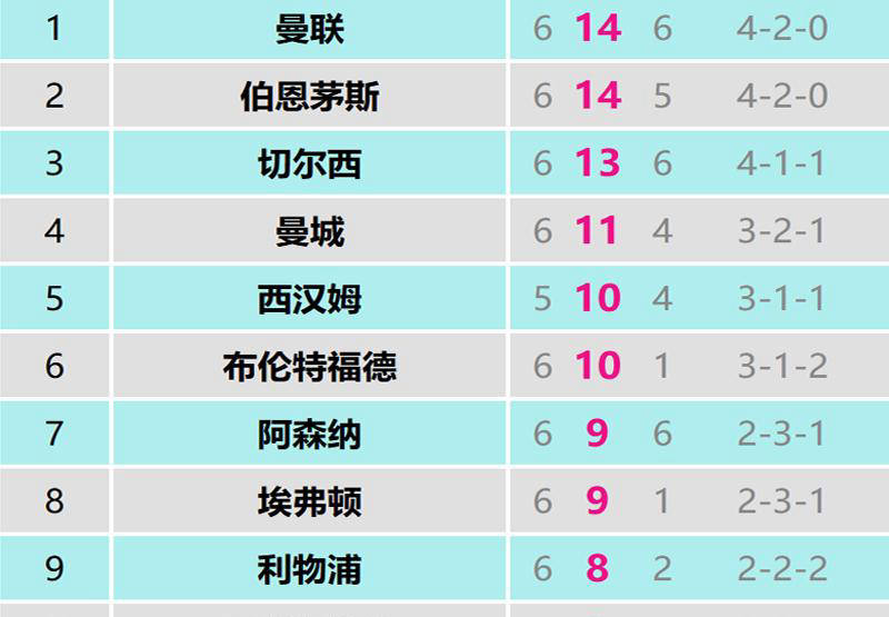 不过,换帅后的曼联录像室属于光明的新篇章。卡里克执教首战击败曼城晋级前五,随后又斩获战胜阿森纳晋升第四的佳绩,即便战平富勒姆暂时未突破前三,过去6场作战以4胜2平领跑,成绩优异。同样换帅的切尔西也录得13分进账,两队的排名持续提升成为积分榜的一大亮点。