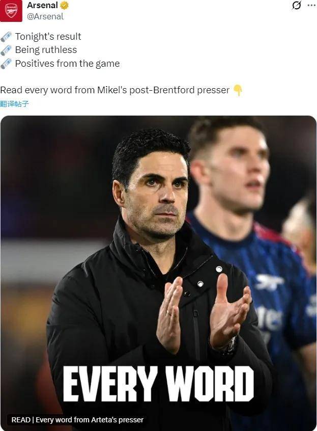 在赛后新闻发布会上,阿尔特塔对比赛进行了总结。他认为,阿森纳在上半场开局阶段缺乏镇定,未能掌控比赛节奏,但随后逐渐进入状态,并在下半场取得领先。然而,面对擅长定位球战术的布伦特福德,阿森纳未能守住优势,最终被对手扳平比分。阿尔特塔强调,球队需要在两个禁区都表现得更加冷酷无情才能赢得比赛。